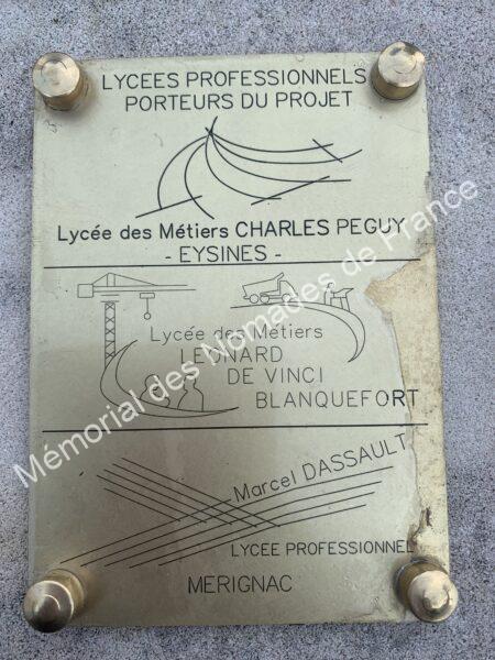Cette table d’orientation est le fruit de l’engagements de professeurs en lycées techniques de la banlieue de Bordeaux –Lycées Charles Péguy (Eysines) Léonard de Vinci (Blanquefort) et Marcel Dassault (Mérignac) – et de deux années de travail de leurs élèves. Remercions chaleureusement ces jeunes femmes et jeunes hommes pour cette réalisation.