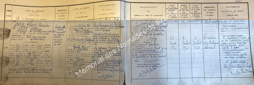 Incarcéré par jugement du tribunal correctionnel de Pont-Lévèque à 8 jours à la maison d’arrêt le 24 juin 1941 pour « flagrant délit de filouterie alimentaire ».
