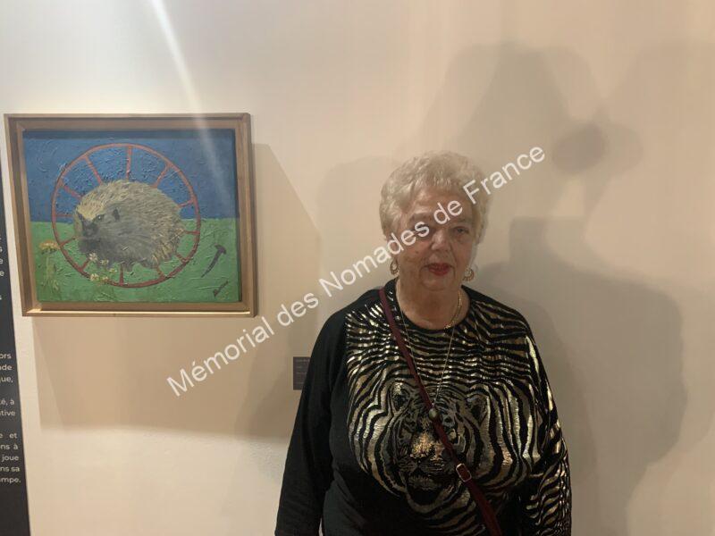 Miyen posant en mars 2024 au Mémorial du Camp de Rivesaltes au côté d’un tableau de son frère Louis. Cliché : Gigi Bonin ©Gigi-Bonin_MNF, 2024