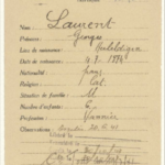 Interné au Camp de Concentration d’Argelès (Pyrénées-Orientales), îlot Y ou I / S. Venant du Camp 11 le 06 mars 1941. Passe dans le Camp 11 le 21/03/1941. Passe dans l’ Y ou I / S le 01/04/1941. Passe dans le Camp 11 le 10/04/1941. En haut de la fiche au crayon rouge: 1591 (sic). S/ RIVESALTES 20/06/1941.