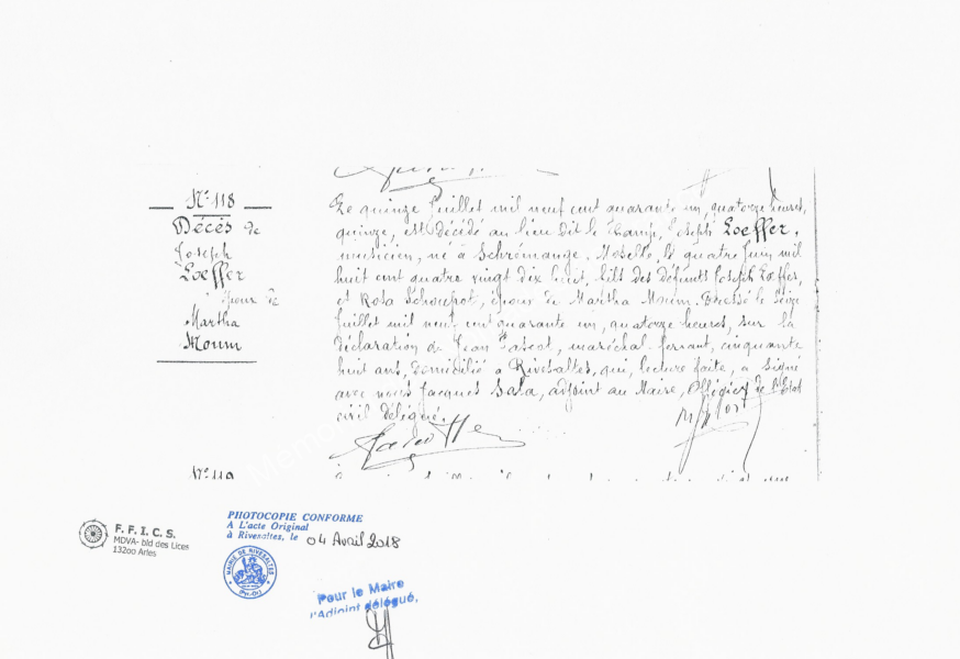 Né à Schweighausen (Bas-Rhin, Schweighouse-sur-Moder depuis 1949), le 06 avril 1898, fils de Michel LOEFFLER (1866-1914) et de Adèle ADOLF (1863-1934), d’une fratrie de 7 enfants, marié à Schweighausen le 15 août 1925 avec Rosalie WETZEL (1907-1940). Veuf, français, Nomade