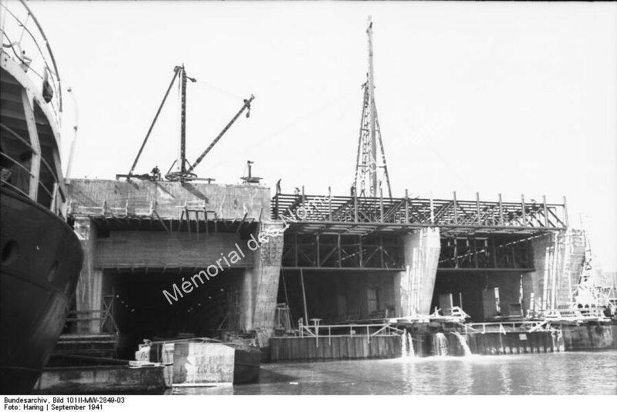 Transfert d’un commando d’une cinquantaine hommes à l’Organisation Todt à Brest (Finistère) où l’on construit en 500 jours pour la kriegsmarine la U-Boot base au lieu-dit « les 4 Pompes » sur l’ancienne base d’hydravions, aux pieds de l’École Navale. Les superstructures de la base sont réalisées par les firmes berlinoises Polenski u. Zoellner, ou Julius Berger, la Société Campenon-Bernard. Les journées de travail durent 12 heures avec une pause de 30 minutes pour déjeuner. Le chantier fonctionne en continu avec une équipe de jour et une de nuit. Le soir les hommes sont confinés au camp Saint-Pierre à Brest [?]. Le 13 Septembre 1941, la première tranche de l’U-Bunker est inaugurée. Retour au camp de Rivesaltes, îlot F, le 08 novembre 1941 après cinq mois de travaux forcés. Parmi eux :