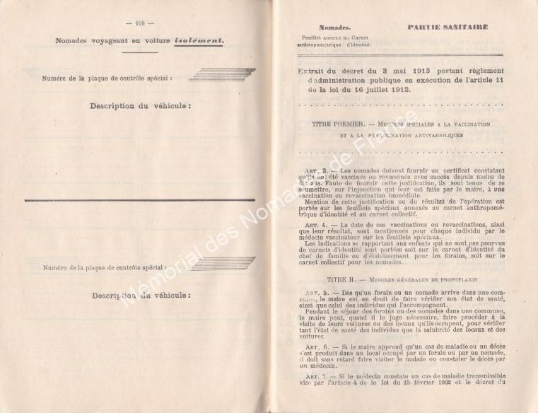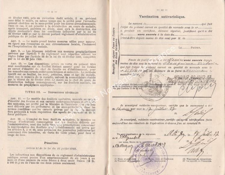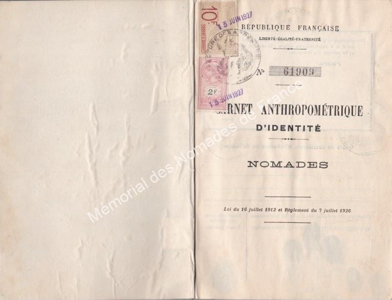 Carnet anthropométrique d’identité, collection Mémorial des Nomades de France.