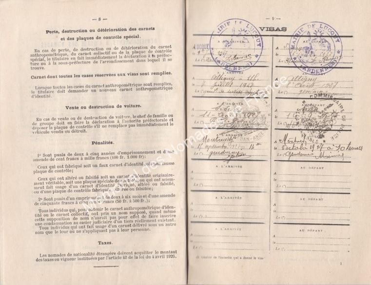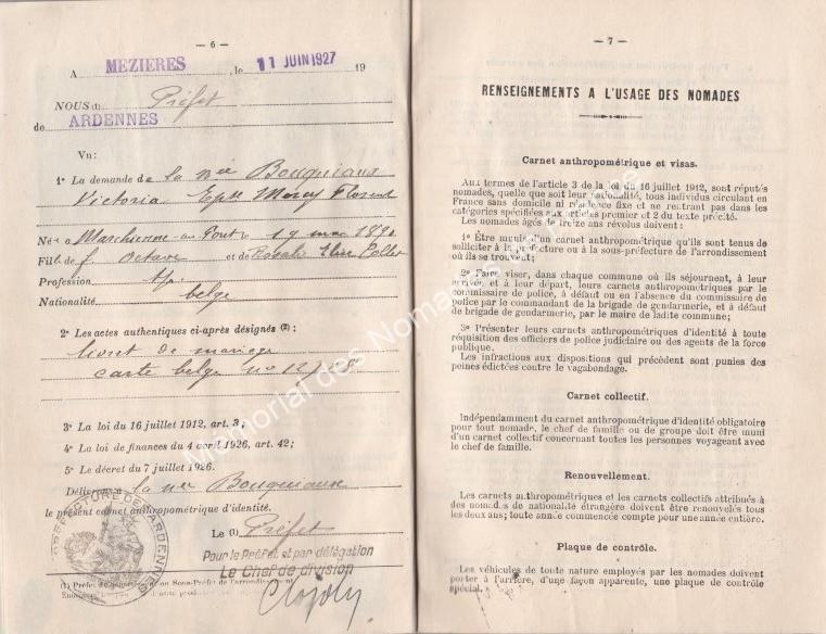 Archives départementales Ardennes, Nomades, Notices individuelles, 1927.