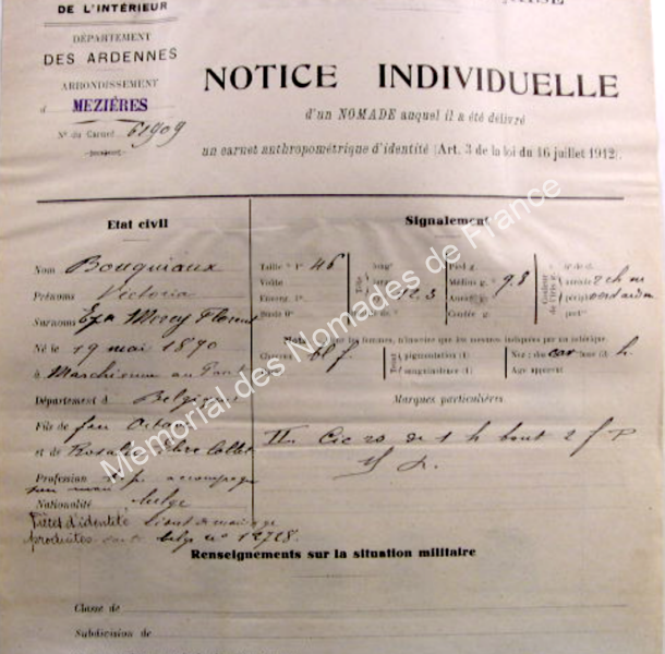 Victoria BOUQUIAUX, Nomade belge (1890 † )